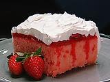 Spread layer of macerated strawberries on top of cake. Spread layer of whipped cream on top of the strawberries, making pretty swirls and ripples. Garnish with fresh strawberries. Refrigerate for at least 4 hours.