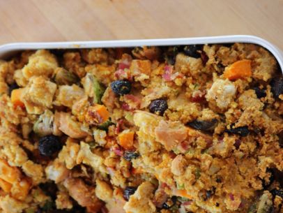 Pile the dressing into a large casserole dish and bake until golden brown on top, 20 to 25 minutes.
