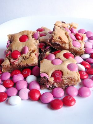 Mix in 2/3 cup M&M's. Spread in 9 x 9 x 2 inch pan. Sprinkle 1/3 to 2/3 cup M&M's on top. Bake for 20 to 25 minutes.