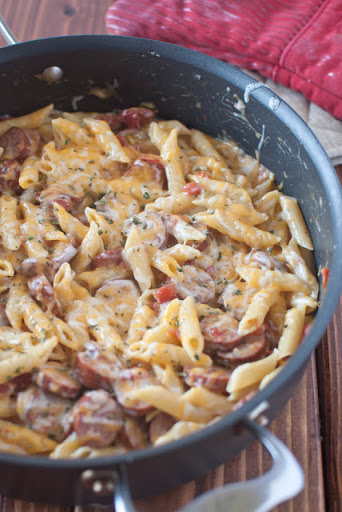 - 14 oz smoked sausage, sliced into 1/4" rounds