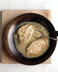 2. Add 1/4 cup minced or sliced shallot to skillet, and cook over medium heat, adding oil or butter as needed, stirring often, until golden, about 1 minute. Raise heat to medium-high. Add segments and juice of 2 lemons, 3/4 cup low-sodium chicken stock, and any plate juices, and deglaze the pan, scraping brown bits from bottom with a wooden spoon. Simmer until sauce reduces by half, about 3 minutes. Gradually stir in 2 to 3 tablespoons cold unsalted butter (cut into small pieces) until just melted. Season to taste.