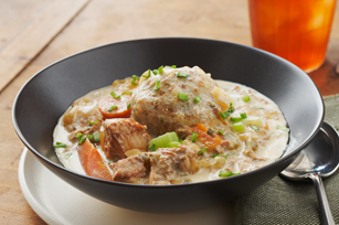TURN off slow cooker. Let stand 15 min. Serve stew and dumplings topped with chives.