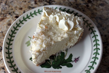 When the custard is cold, beat it with an electric mixer on high speed for1 minute, until it is smooth. Add the remaining 1 cup of heavy cream and beat on high speed until the mixture is thick and fluffy like whipped cream. Fold in 1 cup of the toasted coconut. Pour into the prepared crust. Sprinkle the top with the remaining 1/4 cup toasted coconut and pipe whipped cream on top if desired. Refrigerate the pie until ready to serve.