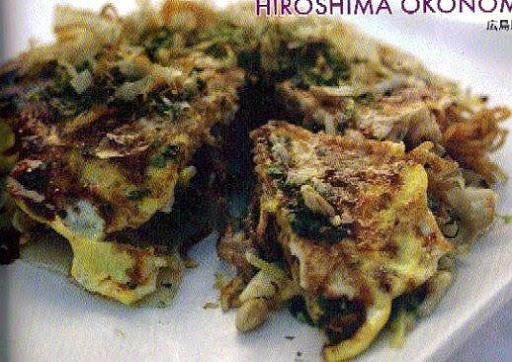 On op of crepe, add cabbage, green onions, bean sprouts, tenkasu, seafood, and meat.