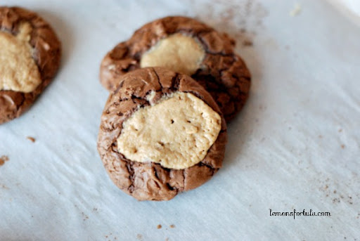 Spoon a ½ teaspoon full of peanut butter filling and place a dollop on the middle of each cookie. Bake in a 350-degree oven for 10 minutes. Let cookies cool on baking sheets for 1 minute before removing to a cooling rack.