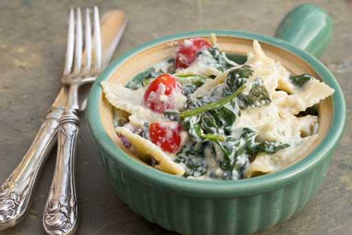 Add in the cooked pasta and stir it to coat completely. Remove from heat and stir in the ricotta and the tomatoes.