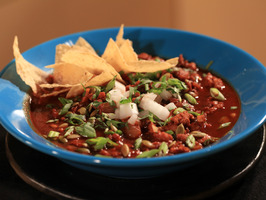 This recipe was conceived in the grocery store aisle many years ago and was a staple in our family for years. Imagine my surprise when my husband entered it in a chili contest and we took first place!
