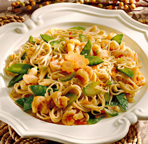Stir sauce. Add sauce to the center of the wok. Cook and stir until thickened and bubbly. Return cooked vegetables to the wok. Add hot cooked noodles or linguine, green onions, and thawed frozen pea pods (if using). Toss all ingredients together to coat with sauce. Cook and stir for 1 to 2 minutes more or until heated through. Serve immediately.