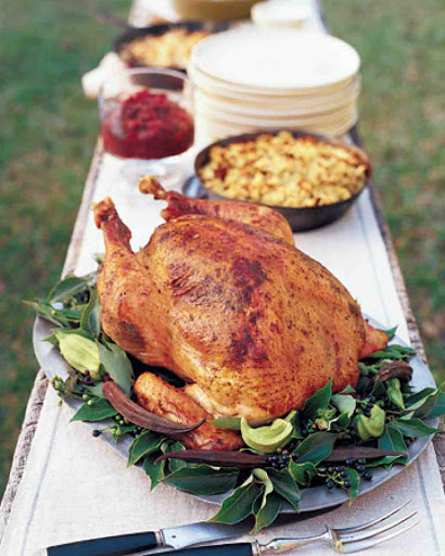 Cook 30 minutes, rotating the pan halfway through. Using a pastry brush, baste the turkey with any pan drippings. Reduce oven temperature to 350 degrees, and continue cooking 2 more hours, basting turkey and rotating pan every 30 minutes; if pan gets too full, spoon out some of the juices, reserving them for gravy.