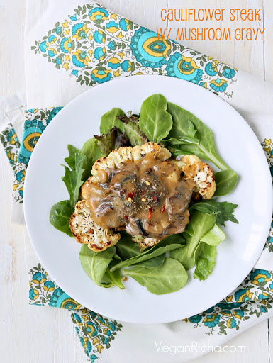 Cauliflower steaks with mushroom gravy