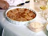 Butter a 10 by 3 by 1 12-inch round baking dish and sprinkle the bottom and sides with 1 tablespoon of the granulated sugar.