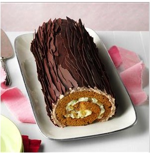 To assemble, unroll cake; spread filling over cake to within 1/4 in. of edges. Roll up again, without towel; trim ends. Transfer to a platter. Spread buttercream over cake.