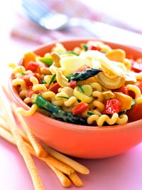 - 8 ounces dried fusilli, fettuccine, linguine or other long pasta noodles