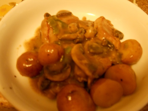 Reserve 1/4 cup of the broth. Add remaining broth, Worcestershire sauce, salt, pepper and potatoes to skillet. Bring to a boil. Reduce heat to low; cover and simmer 15 minutes or until potatoes are tender.