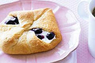 COMBINE Neufchatel and sugar; spread onto dough rectangles to within 1/2 inch of edges. Top evenly with blueberries. Bring opposite corners of rectangles together; press together to seal. Place on ungreased baking sheet.