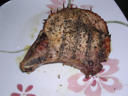 Pork chops stuffed with cheese and prosciutto and then grilled.