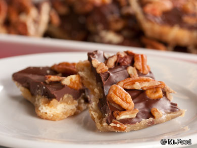 Bake 5 minutes; turn off oven. Sprinkle crackers with chocolate chips and let stand in oven 3 minutes, or until chocolate is melted. Spread chocolate evenly over crackers. Sprinkle pecans over chocolate. Let cool, then break into pieces. Store in an airtight container in refrigerator.