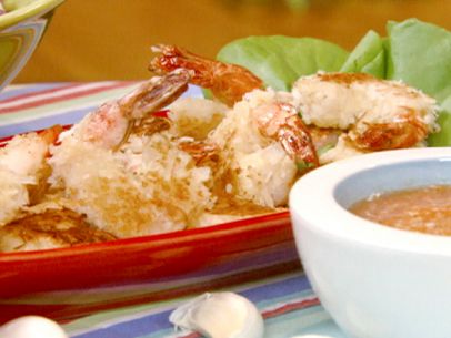 In a medium bowl, whisk together egg, beer, baking powder, & 1/2 cup flour. Place remaining 1/4 cup flour in a shallow dish. Place coconut in a separate shallow dish. Dredge shrimp in flour, shaking off excess. Coat shrimp in beer mixture. Roll shrimp in coconut until all sides are coated. Heat oil in a large skillet over medium-high heat. Add shrimp in batches, cooking 2 minutes per side. Serve with rice pilaf or fried rice.