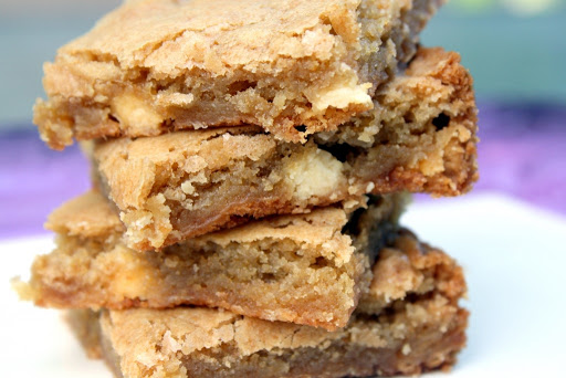 Preheat oven to 350 degrees. In a medium size mixing bowl combine melted butter and brown sugar. Add in egg (beaten) and vanilla. In a separate bowl combine the flour, baking powder, salt, and baking soda. Add dry ingredients to wet ingredients and mix well. Add chocolate chips. Spread dough in a greased 8 x 8 in pan. Bake 20-25 minutes, or until a toothpick inserted into the center comes out clean.