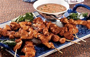 5. Thread the chicken accordion-style onto the skewers. Grill or broil the skewers, turning and brushing occasionally with the reserved marinade, until the chicken is cooked though, 4 to 5 minutes per side. Serve with the peanut sauce.