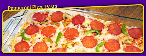 4. Transfer the mixture to a greased 9 x 13-inch (3 L) baking dish. Sprinkle with the remaining cheese and dot with the reserved pepperoni slices. Bake for 30 minutes. Let the dish stand for 5 minutes; slice and serve with additional warmed pizza sauce if desired.