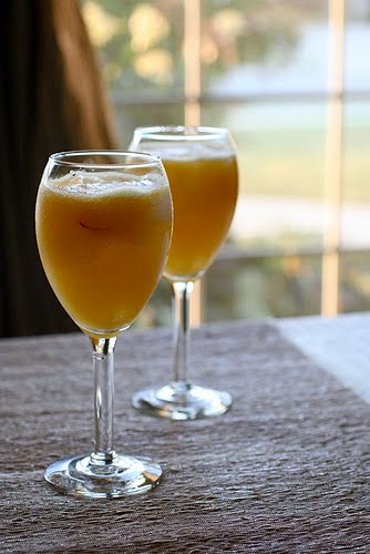 In the bowl of a blender or food processor, combine the peaches, peach schnapps, salt and a scant 2 cups of the wine. Puree until smooth and frothy, about 1 minute. Strain the mixture through a fine mesh sieve if desired (I skipped this step and preferred the thicker texture of the peach puree) and transfer to a pitcher. Refrigerate for at least 2 hours.