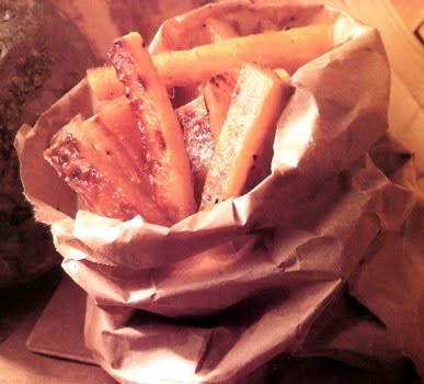 Bake in preheated moderate oven (375°) until tender and browned, about 45 minutes, turning sticks over after 30 minutes.
