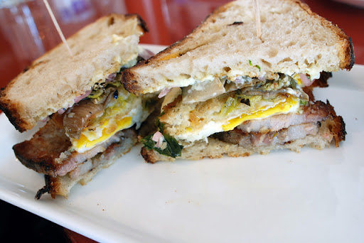Fry bacon in skillet until desired doneness. Pat bacon with paper towels, place on plate and drizzle with maple syrup, coating entirely. Discard bacon grease in skillet, leaving just enough to fry the egg. Fry egg, making sure to break the yolk; sprinkle with cumin, garlic, and paprika and flip. Place egg and bacon (cut in half if desired) on 1 warm bread slice with melted cheese. Top with other bread slice.