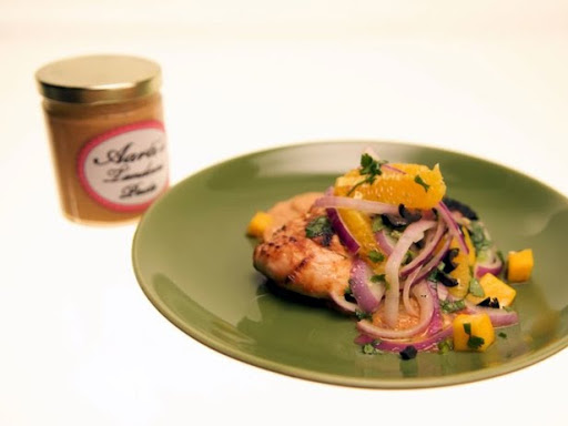 In a saute pan, heat the vegetable oil, and cook the chicken for about 7 minutes per side, until cooked through. Alternately, you can also grill the chicken. Remove the chicken from the pan and pour the remaining 1 cup of marinade into the pan and bring to a gentle simmer. Stir in the honey and turn off the heat. Toss the salad greens with some olive oil, a squirt of lemon juice and salt, and pepper, to taste. Serve each chicken breast over a bed of greens and top with the heated tandoori sauce.