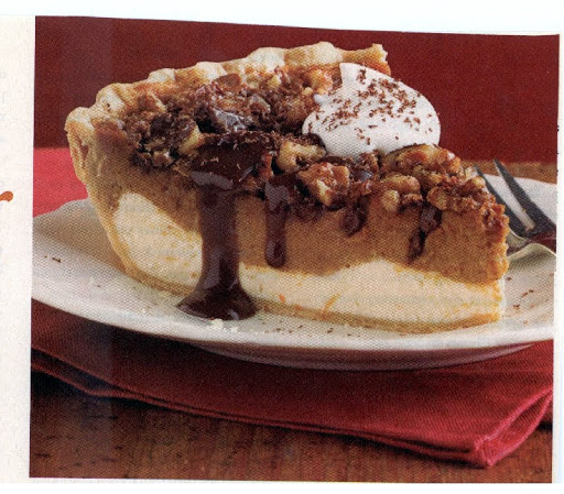 For pumpkin filling: in large bowl, combine pumpkin, the 3/4 cup sugar, and 2 tea. pumpkin pie spice. Add the 3 eggs and beat lightly. Gradually beat in half-and-half. Spread cream cheese mixture into pastry-lined pie pan. Carefully spoon pumpkin filling over cream cheese.