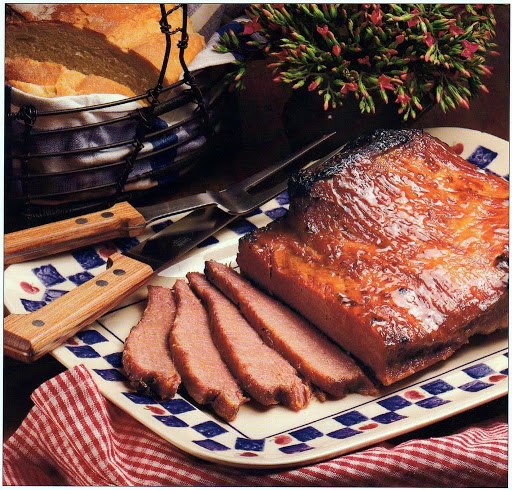 Rinse the beef thoroughly to remove a much salt as possible. Place in a kettle large enough to cover with cold water. All all seasoning and bring to a boil, reduce the heat and simmer, covered until fork tender, about 4–5 hours. Remove from the liquid and remove as much fat as possible.