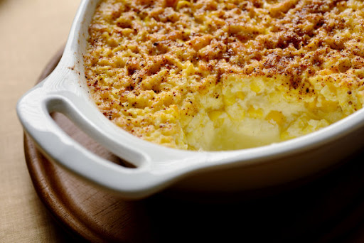 Heat oven to 350 degrees and butter a 1 1/2-quart baking dish. Cut the corn from the cob into a mixing bowl by slicing from the top of the ear downward. Don’t go too close to the cob; cut only half the kernel, then scrape off the rest with the back of the knife.