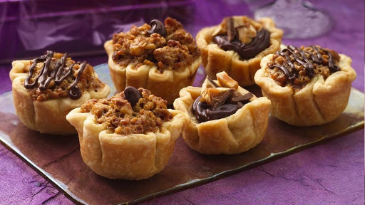 Heat oven to 450°F. Unroll pie crusts on work surface. With rolling pin, roll each crust lightly into 12-inch round. With 3-inch round cutter, cut 24 rounds from crusts, rerolling scraps as necessary. Press 1 pie crust round in bottom and up side of each of 24 ungreased mini muffin cups, so edges of crusts extend slightly above sides of cups.