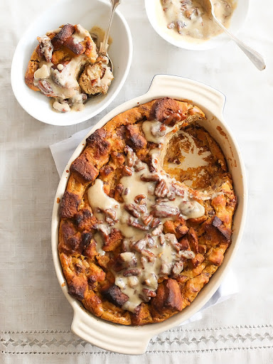 Pumpkin Bread Pudding with Whiskey Cream Sauce