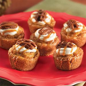 Place a toasted pecan half on top of each cup. Drizzle with caramel apple dip.