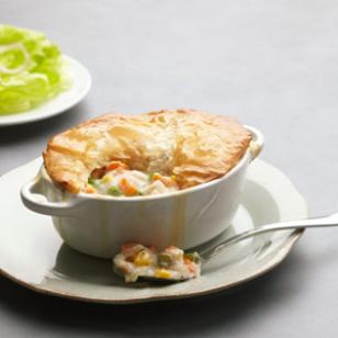 4. Set the potpies on a baking sheet. Bake until the tops are golden and the filling bubbly, 18 to 20 minutes.