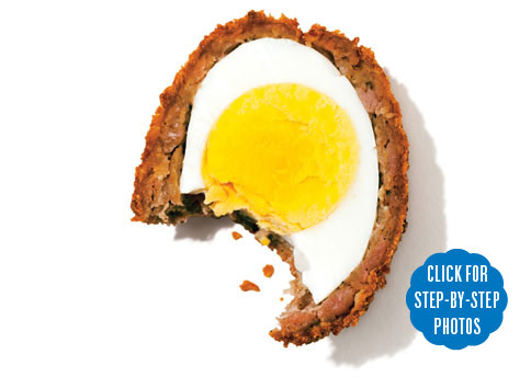 We’ve fallen hard for Scotch eggs–the gastropub staple–cooked eggs swaddled in sausage meat, then breaded and fried. Sorry, doc, now we’re making them at home.