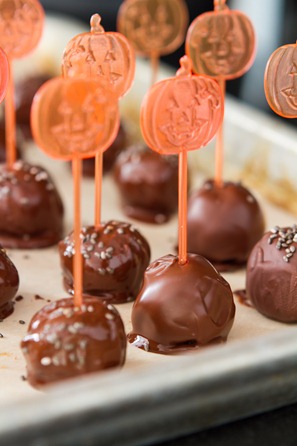2. Scoop out the sticky mixture into a bowl and freeze for about 10 minutes. Chilling it makes the caramel easier to shape into balls. After chilling, lightly wet your fingers and shape caramel into small balls to make about 18 balls total.