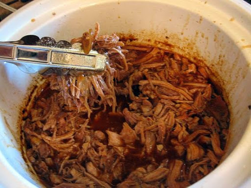 3 hours before serving, remove fat and excess liquid. Add all ingredients and shred the pork with 2 forks.