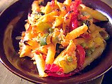 - 2 red peppers, cored and cut into 1-inch wide strips