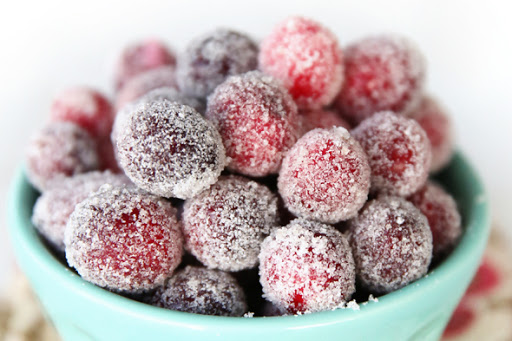 Roll berries a handful at a time in sugar (use the two-sugar technique from the notes if desired.)  Place sugared berries on a baking sheet, or foil, etc.  and let dry for an hour or two.