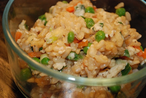 Stir in reserved cooked egg whites, cooked brown rice, and soy sauce; cook until heated through, stirring once or twice, about 1 minute