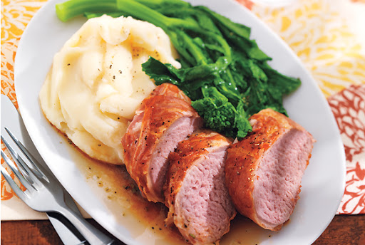 Pancetta-Wrapped Pork Tenderloin With Garlic Mashed Potatoes