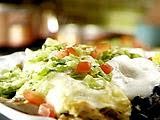 Change the temperature of the oven to 350 degrees F and begin assembling the dish. Take a large baking dish and smear the bottom with some of the reserved tomatillo salsa. Now take the flour tortillas and briefly flash them over the stove-top flame (or put them briefly under the broiler if using an electric stove). Using a shallow bowl, coat each tortilla lightly with the reserved salsa mix. Put a scoop of the shredded chicken-enchilada mix on top of the tortilla followed by a sprinkle of the shredded cheese. Fold the tortilla over the filling and roll like a cigar to enclose it. Using a spatula place the tortillas in the baking dish and continue to do the same with all the tortillas. Finally pour over some more of the salsa and top with the remaining shredded cheese. Bake uncovered for about 30 minutes until bubbly and cracked on top. Garnish, cilantro and tomato.