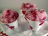 Place 1 1/2 cups of crushed ice in a serving dish. Pour 3 to 4 tablespoons of the syrup mixture over the ice. Serve immediately.