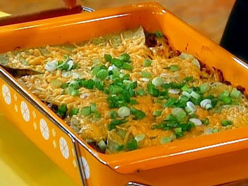 Coat a shallow baking dish with remaining extra-virgin olive oil, about 1 tablespoon oil. Cut the tortillas in half or quarters to make them easy to layer with. Build lasagna in layers of meat and beans, then tortillas, then cheese. Repeat: meat, tortilla, cheese again. Bake lasagna 12 to 15 minutes until cheese is brown and bubbly. Top with the scallions and serve.