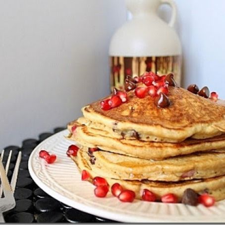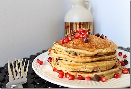 Pomegranate chocolate chip pancakes by Running to the Kitchen | Feastie