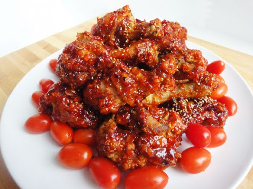 Add twice fried chicken to sauce or together in a large bowl and stir gently with a wooden spoon.