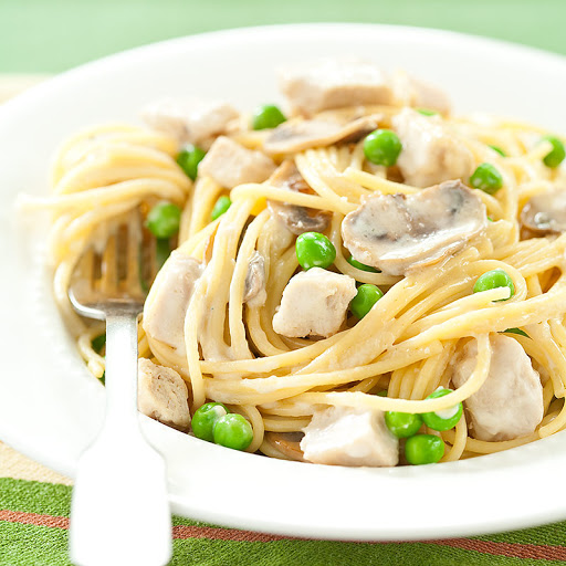 2. Add 1 tablespoon salt and pasta to boiling water and cook until al dente. Reserve 1 cup pasta cooking water, drain pasta, and return to pot. Add mushroom sauce, turkey, and peas, and ½ cup reserved pasta water to pot and toss to combine, adding additional reserved pasta water as needed. Season with salt and pepper. Serve.