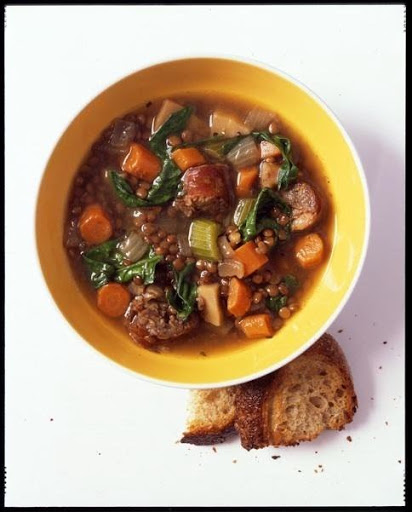 Add lentils; stir to coat. Add 3 quarts broth. Bring to boil; reduce to heat to medium and simmer until lentils are tender, stirring occasionally and adding more broth by 1/4 capfuls if soup is too thick, 20 minutes.